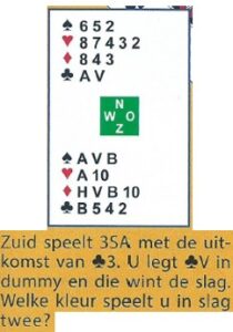 Onderstaand een bridgeprobleempje dat ik uit het programma “Jack” heb gekopieerd: